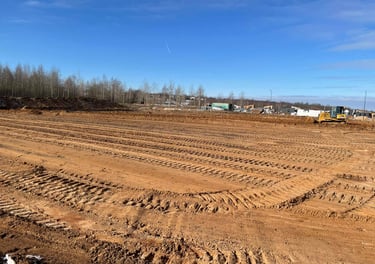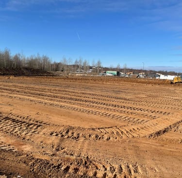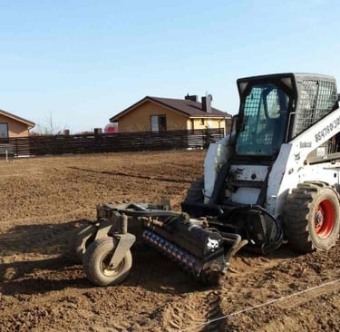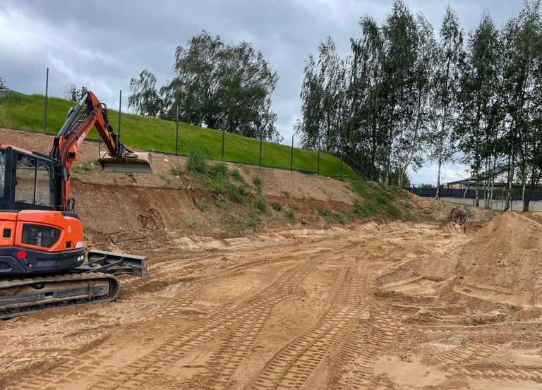 Kalvų nukasimas ir duobių užpylimas: Sklypo išlyginimas iki projektinio lygio.