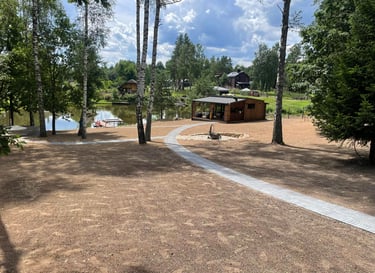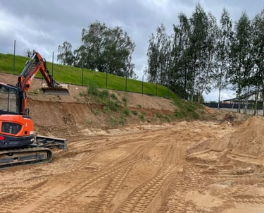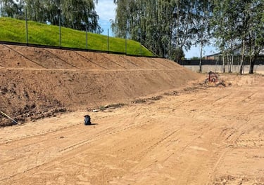 Drenažo ir lietaus nuotekų sistemos: Formuojami nuolydžiai, kad vanduo pasišalintų iš sklypo.