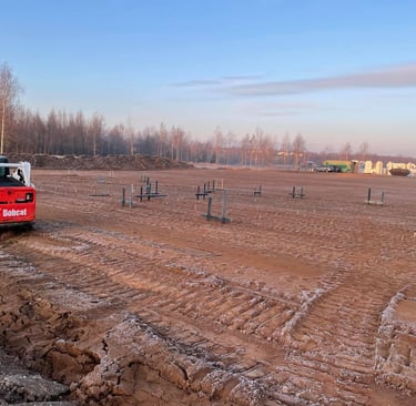 Vandentiekis ir nuotekos: Kasamos gilios tranšėjos (dažnai žemiau įšalo ribos, apie 1,2–1,5 m).